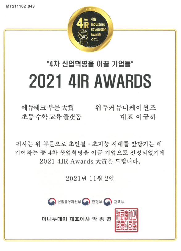 2021 4IR AWARDS 대상 페이지 정보 작성자 WeDu 댓글 0건 조회 8,381회 작성일 21-12-31 13:01 본문 2021-11-02 2021 4IR AWARDS 대상 머니투데이 List Previous2021 소년한국 우수 어린이 도서 22.01.06 Next2020 소년한국 우수 어린이 도서 선정 21.12.31
