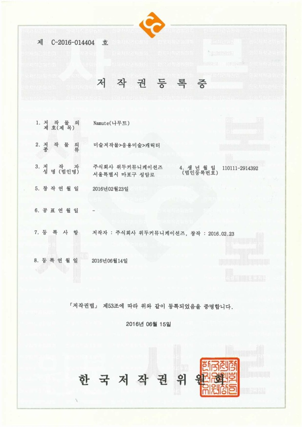 [한국/저작권] 나무트 페이지 정보 작성자 WeDu 댓글 0건 조회 4,744회 작성일 19-05-30 19:08 본문 2016-06-14 저작권 C-2016-014404 나무트 / 미술저작물>응용미술>캐릭터 List Previous[한국/저작권] 리안 19.05.30 Next[한국/저작권] 길리 19.05.30