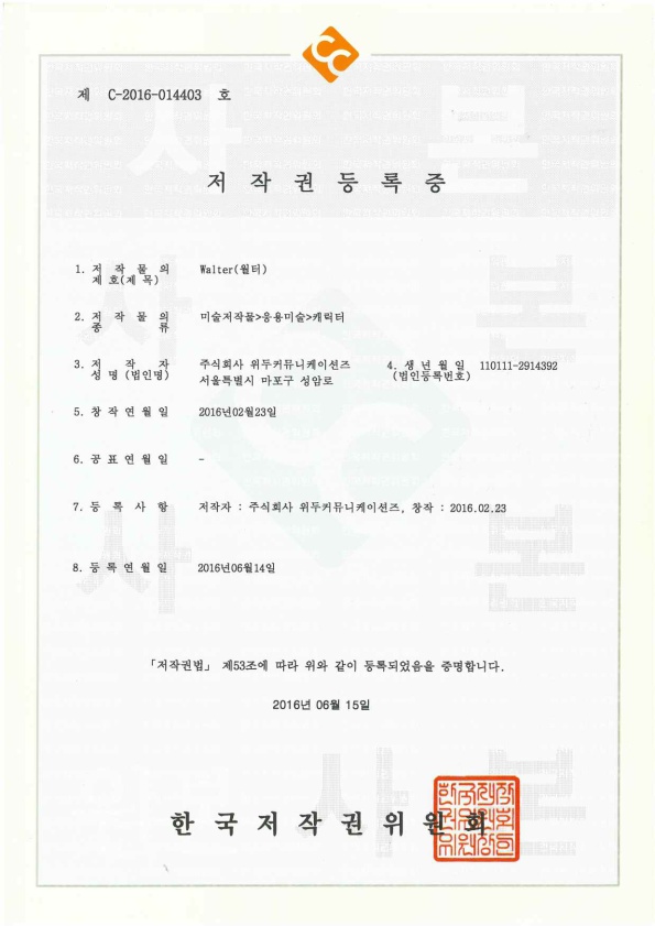 [한국/저작권] 월터 페이지 정보 작성자 WeDu 댓글 0건 조회 4,654회 작성일 19-05-30 19:09 본문 2016-06-15 저작권 C-2016-014403 월터 / 미술저작물>응용미술>캐릭터 List Previous[한국/저작권] 파벨 19.05.30 Next[한국/저작권] 필립 19.05.30