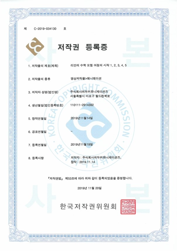 [한국/저작권] 리안의 수학 모험 여정의 시작 1,2,3,4,5 페이지 정보 작성자 WeDu 댓글 0건 조회 4,415회 작성일 21-12-31 12:36 본문 2019-11-20 저작권 C-2019-034130 영상저작물>애니메이션 List Previous[한국/저작권] OLL KIDS/MATH 21.12.31 Next[한국/저작권] 리안의 수학 모험 애니메이션 OST 19.11.25