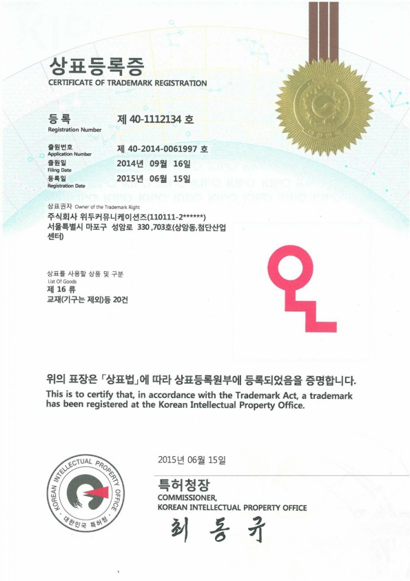 [한국/상표] OLL 16류 페이지 정보 작성자 WeDu 댓글 0건 조회 4,770회 작성일 19-05-30 18:59 본문 2015-06-15 상표 제 40-1112134호 16류 List Previous[한국/상표] OLL 41류 19.05.30 Next[한국/상표] OLL 09류 19.05.30